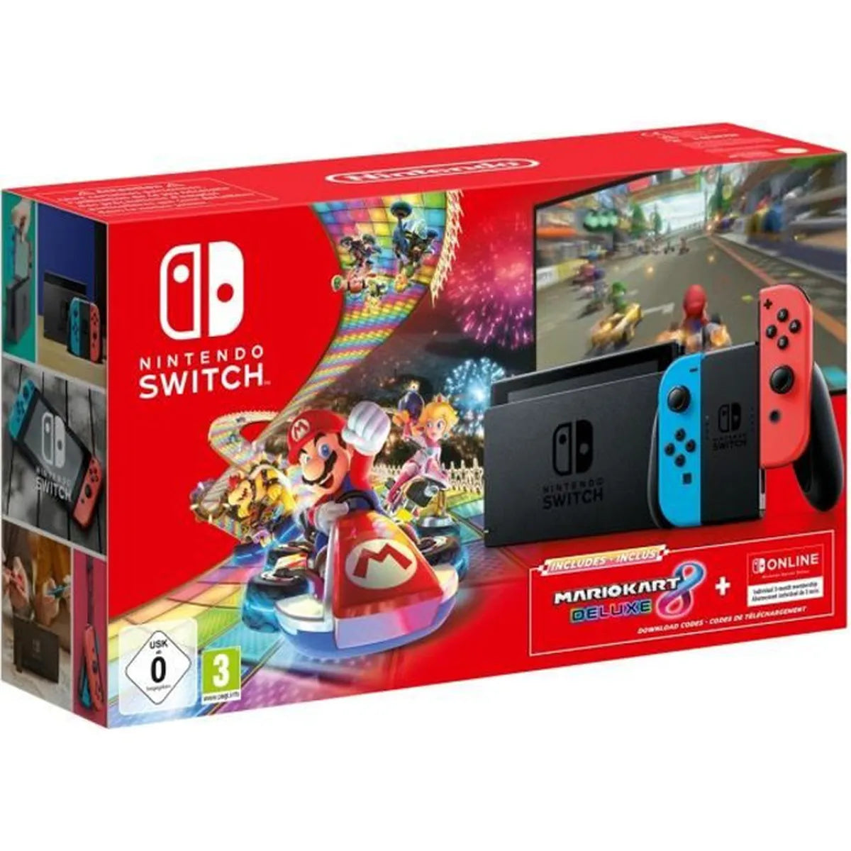 Contenu : Console Nintendo Switch (MOD. HAC-001-01), 2 manettes Joy-Con, station d’accueil Nintendo Switch, support Joy-Con, adaptateur secteur, câble HDMI et dragonnes Joy-Con.